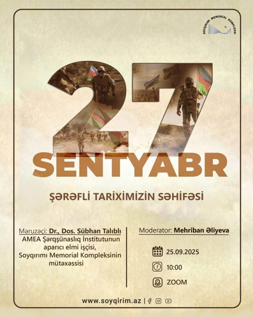 Soyqırımı Memorial Kompleksinin təşkilatçılığı, kompleksin direktor müavini Mehriban Əliyevanın moderatorluğu ilə 27 Sentyabr – Anım Gününə həsr olunmuş vebinar keçirilib.