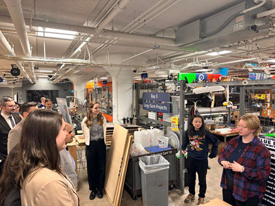 Professor Qoldberqin qısa mühazirəsindən sonra bütün mərtəbələr və orada görülən işlərlə tanış olmaq fürsətimiz oldu. Əvvəla onu qeyd edim ki, laboratoriyalarda yeni təhsil texnoloji istehsal prosesinə dair təşəbbüslərin reallaşdırılmasına şahidlik etdik. Müxtəlif millətlərdən olan tələbələrdən mütəşəkkil mərkəzdə tələbələrin innovativ fikirlərini reallaşdırmaq üçün bütün imkanlar təmin olunmuşdu. Bundan əlavə tələbələrin dünyada da tanınan professora adı ilə müraciət etməkləri və professorun son dərəcə sərbəst olması diqqətdən qaçmadı.
