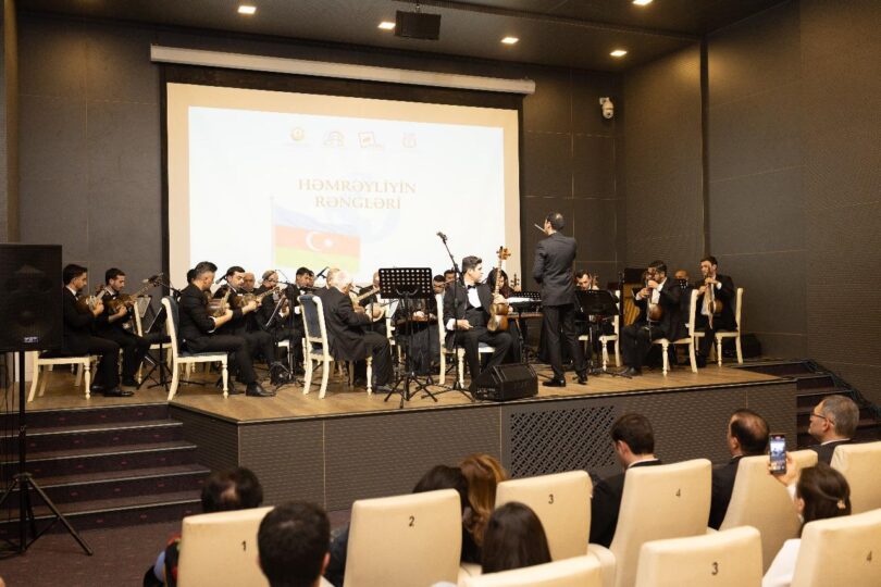 Tədbirin bədii hissəsində Gəncə Dövlət Filarmoniyasının Xalq çalğı alətləri orkestri geniş konsert proqramı təqdim edib.